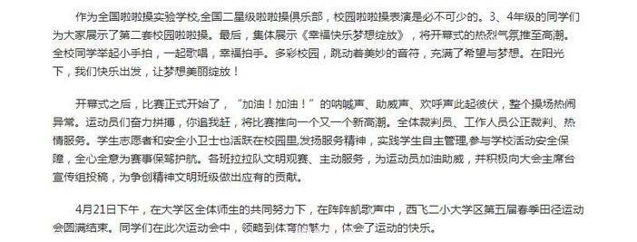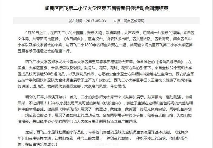 阎良区西飞二小大学区第五届春季田径运动会圆满结束