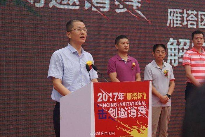 开幕式上,雁塔区委常委、区政府常务副区长解宁元致欢迎词,西安大方集团董事长王方胜和万国体育总裁张涛分别致辞。开幕式现场,在雁塔区区级相关部门负责同志,以及来自全国各地的运动员、教练员、裁判员和新闻媒体朋友们的注目下,各位领导及嘉宾共同提剑,启动开幕仪式。最后,雁塔区人大常委会主任刘崇利宣布2017年“雁塔杯”击剑邀请赛开幕。