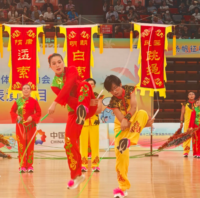 据西安市跳绳协会秘书长董芬勃介绍,自从2013年花样跳绳被列入陕西省第四批非物质文化遗产名录以来,在省市各级主管部门的大力支持下,花样跳绳在西安市的中小学、社区内得到了广泛的普及和推广。这次为了备战第十二届全国少数民族传统体育运动会,协会组建了一支以新人为主的队伍。在大家的共同努力下,队伍在动作编排上以传承为主,创新了个人绳技、长绳绳技、绳阵阵法,在队形编排上求新、求变,从比赛结果看效果非常好,希望未来有更多的人加入花样跳绳的行列中来。