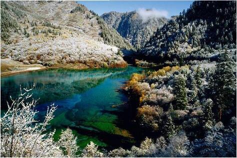 九寨沟:九寨沟因沟内分布着9个藏族村寨而得名,海拔2000~3000米,属高山深谷碳酸盐堰塞地貌,以翠海(高山湖泊)、叠海、彩林、雪山、藏情“五绝”驰名中外,被誉为“梦仙境”和“童话世界”。主景长沙有六公里,面积6万多公顷,有长海、剑岩、诺日朗、树正、扎如、黑海六大景观,呈“Y”字形分布,以水景最为奇丽,泉、瀑、河、滩将108个海子连缀一体,碧蓝澄澈,千颜万色,多姿多彩,“水在树间流,树在水中长”,有“黄山归来不看岳,九寨归来不看水”和“世界水景之王”之称。冬日,九寨沟变得尤为宁静,尤为充满诗情画意。山峦与树林银装素裹,瀑布与湖泊冰清玉洁、蓝色湖面的冰层在日出日落的温差中,变幻着奇妙的冰纹,冰凝的瀑布九寨沟冬景间、细细的水流发出沁人心脾的音乐。初冬的九寨沟温度,并不太冷,温度在-5℃~10℃之间。海子由于海拔及水底沉积物的不同,展现出不同的季节景观,海拔2250米的树正群沟的海子还是一片绿蓝,没有一点结冰的迹象;海拔2660米的日则沟的海子则呈现半冰半水的奇特景色……很多朋友都觉得冬季的九寨沟就是一个冰窟,很冷,大家最关心的就是九寨沟的天气情况,去九寨沟是不是要全副武装自己?其实不然,九寨沟的冬天远没有大家想象中的寒冷,虽然多雪,但基本天天放晴,而且雪多在夜间下,冬季九寨沟晴天的时间在一年四季中是最多的,中午时分是很温暖的,九寨沟位于四川以北,属中高海拔地区,其气候特点就是昼夜温差比较大,白天太阳,晚上则突然降温到几度或零下几度,所以冬季去九寨沟一定要注意保暖,一般须备羽绒服和棉衣,还有个特别提醒,九寨沟的冬季比较干燥,所以爱美的美眉们去九寨沟一定要带上保湿的护肤品,保护好自己美美的皮肤。