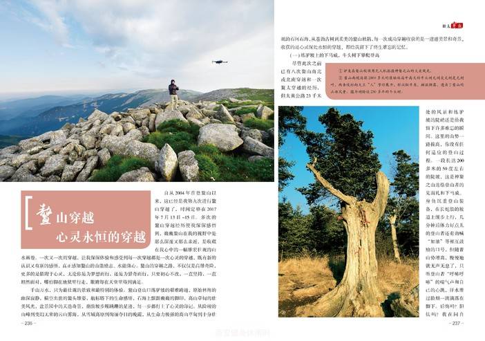 为了使本书具有可读性和欣赏性,书中精心选配了作者及其他户外登山爱好者和摄影爱好者在不同时间、不同季节登鳌山、穿越鳌太四十里跑马梁的过程中所拍摄的,能代表鳌太穿越线路上天人合一和大美风光的照片520 余幅以丰富本书内容。作为年来热爱秦岭山水、执着于户外登山运动的老驴友,本书是奉献给鳌山和鳌山南北坡人民的一份丰富的文化大餐,也是在鳌山被评为中国十大“非著名”山峰 10 周年之际献给神鳌之山的一份厚礼。诚挚希望本书的出版能为亿万年之久的鳌山留下一份丰富的山水文化财富,为顶天立地的“中华祖龙”留下浓墨重彩的一笔。