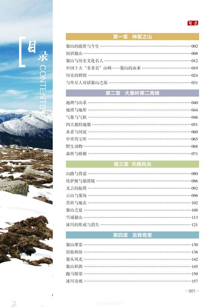 全书内容涉及神鳌之山、大秦岭第二高峰、天路风光、鳌山上的十大奇景、中华龙脊上的鳌太穿越、秦岭腹地最大的山间盆地——咀头盆地、鳌山南麓的岭南九寨、鳌山北麓的桃川河谷等方方面面,是一本以图文并茂的方式全面介绍和展示鳌山悠久历史、山水文化、户外登山运动资源及徒步穿越鳌太线的专著,又是一本通俗易懂的集知识性、实用性于一体的关注鳌山和探秘神奇鳌山的服务指南,具有一定的史料价值和收藏价值。
