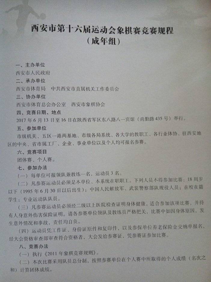 六月的古城骄阳似火,由西安市人民政府主办,西安市体育局、市直属机关工委承办,西安市体育总会、西安市象棋协会协办的西安市第十六届运动会象棋成年组比赛,6月13—15日在西安隆重举行。