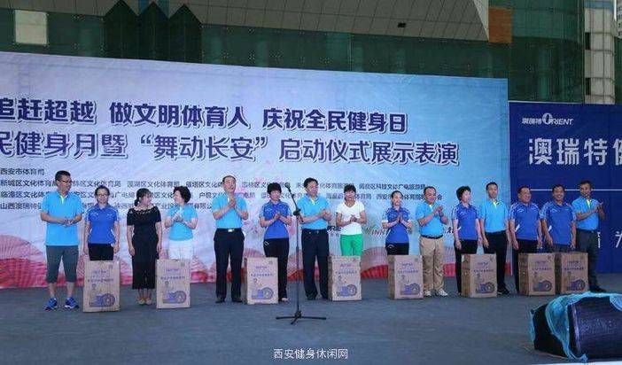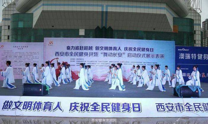 为深入贯彻落实《全民健身计划(2016-2020年)》,促进全民健身与全民健康深度融合,庆祝全民健身日,全力唱响“全民全运、全运惠民,我要上全运”主题,喜迎第十四届全运会在我省举办,营造文明出行、文明健身、全民参与的良好氛围,8月7日,由西安市体育局主办,各区县文体局、西安市社会体育指导员协会协办,山西澳瑞特健康产业股份有限公司、陕西威赢体育产业投资管理有限公司支持的"奋力追赶超越、做文明体育人、庆祝全民健身日西安市全民健身月暨“舞动长安”启动仪式展示表演"活动在西安城市运动公园成功举行。
