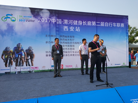 由陕西省体育局、陕西省水利厅主办,陕西省航空无线电汽车摩托车运动管理中心、西安市体育局、西安市水务局承办的“2017中国•渭河健身长廊第二届自行车联赛(西安站)”于2017年9月23日在西安灞渭桥车游湿地景区隆重举行。陕西省体育局副巡视员吴予兴、陕西省航空无线电汽车摩托车运动管理中心副主任王超英、西安市体育局副局长王维、西安市渭浐河管理中心主任陈清选等领导嘉宾参加了活动仪式。
