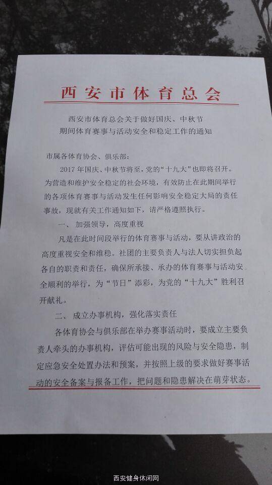 西安市体育总会关于做好国庆、中秋节期间体育赛事与活动安全和稳定工作的通知