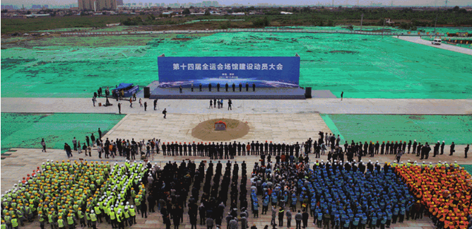 10月9日上午,第十四届全运会场馆建设动员大会在西安召开。省委书记娄勤俭,省长胡和平,华润集团董事长傅育宁,省委常委、常务副省长梁桂,省委常委、西安市委书记王永康,省委常委、省委秘书长钱引安参加动员大会,动员大会由西安市市长上官吉庆主持,西安国际港务区、华润集团负责同志分别发言,与会领导同志共同为项目培土奠基。第十四届全运会主会场设在位于西安国际港务区的西安奥体中心,由华润集团负责代建设代运营工作,项目包括一座可容纳6万人的体育场、一座1.8万个座位的体育馆和一座4000个座位的游泳馆,将承担第十四届全运会开、闭幕式及田径、体操、游泳、跳水等重要赛事。