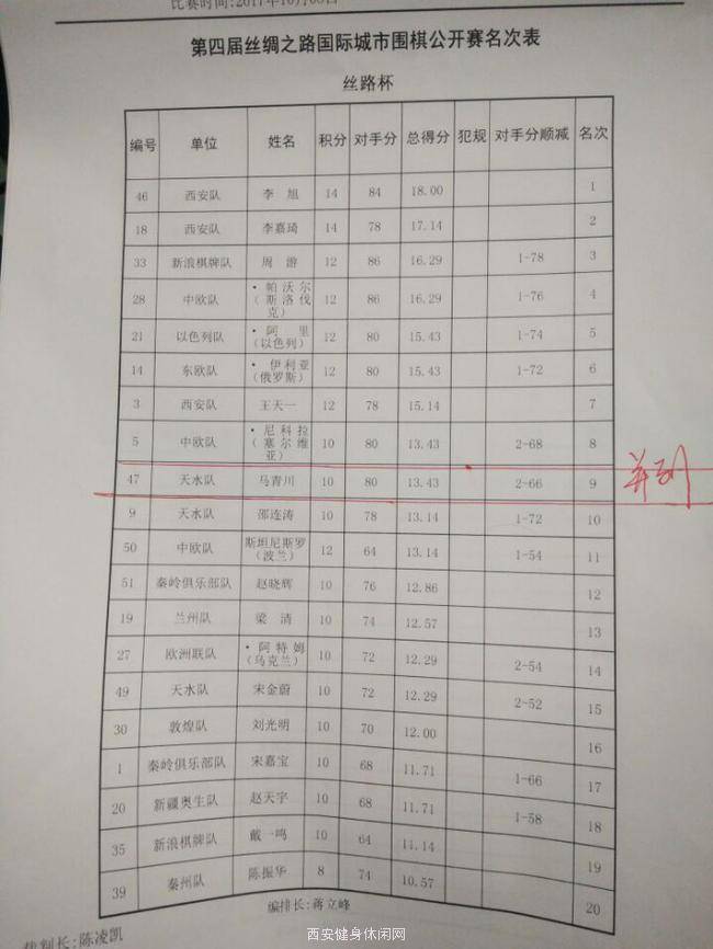 10月12日下午,中国天水“羲皇故里杯”第4届丝绸之路国际城市围棋公开赛在天辰大酒店战罢最后2轮,李旭、李嘉琦分别战胜周游、帕沃尔,李旭凭借小分优势时隔2年再度问鼎,李嘉琦、周游、帕沃尔分列2-4名。西安、中欧、天水队分列团体前3。