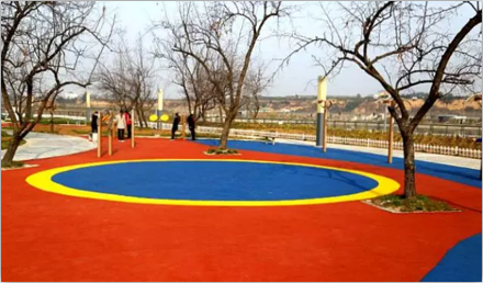 园区建设充分结合景区规划,大量采用色彩明亮的塑胶地面,既为群众健身提供了缓冲保护,又使园区更具时尚、活泼元素,为群众营造了良好的健身体验。