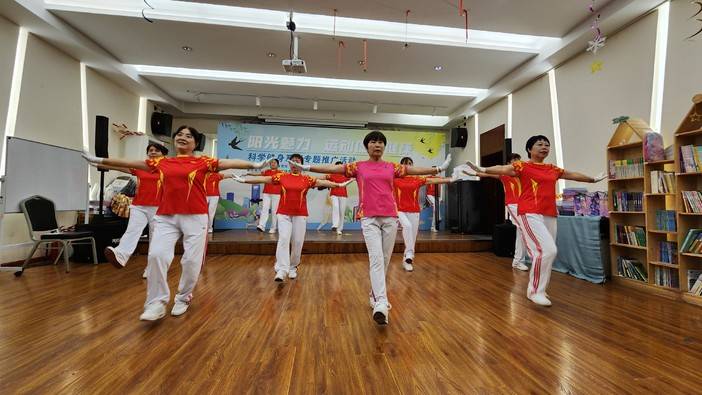 活动现场,各协会带来舞龙、武术拳法表演、八段锦等群众喜闻乐见的体育运动项目展示。社区群众也表演了他们的日常锻炼项目健身操和柔力球。表演结束后,各协会的专业老师还为群众讲解传授健身知识,答疑解惑,达到了此次活动倡导科学健身的目的。群众也享受到了运动带来的快乐,场面热闹非凡。