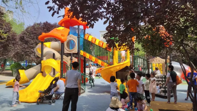 作为西安市全民健身示范社区之一,阳光馨园社区协调各方资源打造“15分钟健身圈”。在建设改造过程中,社区翻新更换了足球场、篮球场以及乒乓球场地,增设健身步道,安装儿童游玩大型组合滑梯,新添益智类、棋类、牌类活动器械6张,健身类器材36个,完善嵌入式服务设施,满足从老到少的多样健身需求。