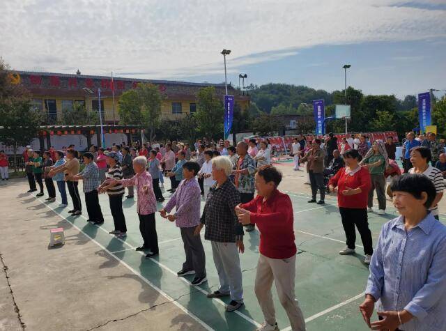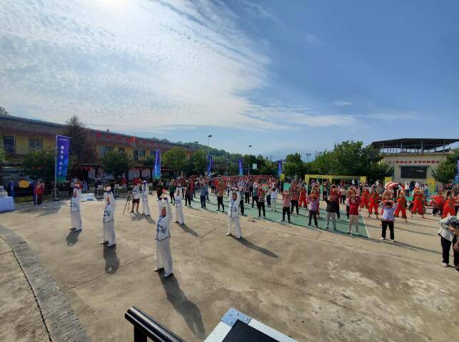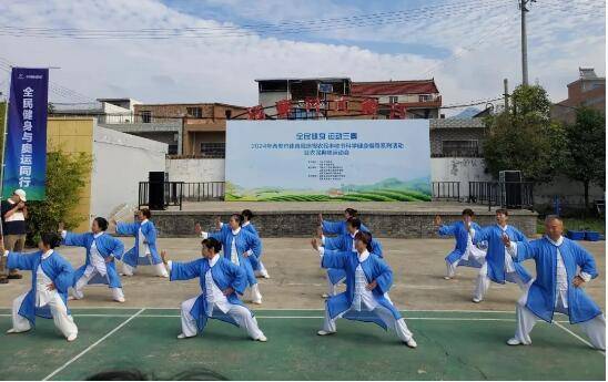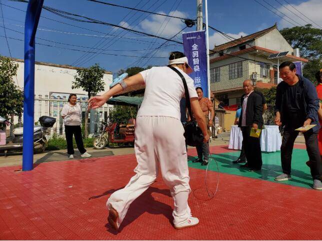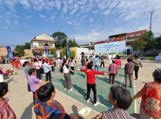 在暖场活动中,当地群众的广场舞表演便赢得阵阵掌声,随后的太极拳、健身柔力球、健身气功展示更是让村民们大开眼界。来自蓝田县健身气功辅导站的国家级社会体育指导员黄国芳带领村民们习练八段锦,面对这难得的机会,村民们学得非常认真。