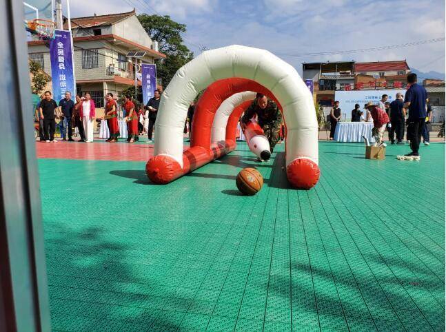 在随后的趣味运动会中,村民们踊跃参与,乒乓运输、沙包投准、颗粒归仓、一羽中的、猪羊入圈、滚铁环,各个项目前都排起了长队。