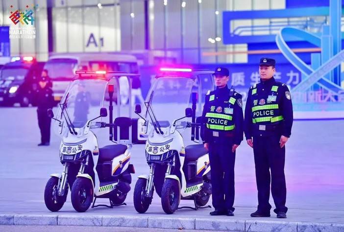 为了确保赛事平稳有序进行,公安交警和安保人员参与赛事安保工作。赛道外,还有公共交通、城市管理、环境保护、气象等各部门工作人员坚守岗位,齐力为选手“保驾”,为城市“护航”。