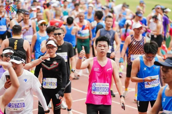 除此之外,赛事首次引入赛道蓝线,以沿线地贴形式按照丈量员丈量时的最短路径指引选手,沿着蓝线奔跑,有助于提高选手成绩及参赛体验。