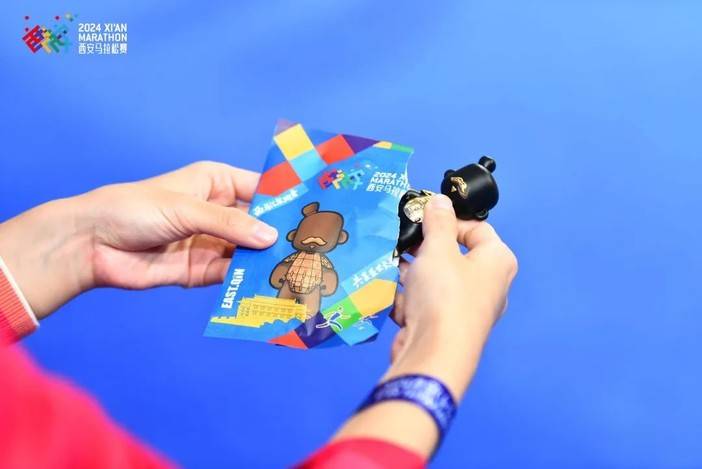 “俑行长安”惊喜盲袋给每位参赛者带来别样的惊喜,打开的一瞬间,无不为陕西特色“萌物”而震撼,造型独特,制作精巧,色彩鲜艳,这也是赛事组委会为每一位跑友准备的礼物。