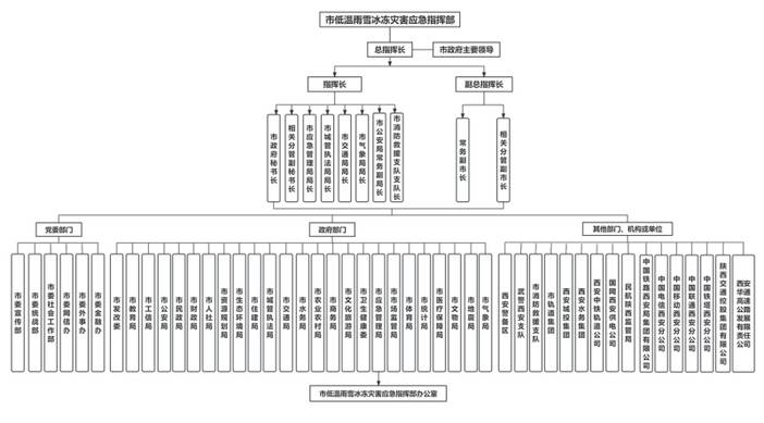 西安市低温雨雪冰冻灾害应急指挥机构组织图