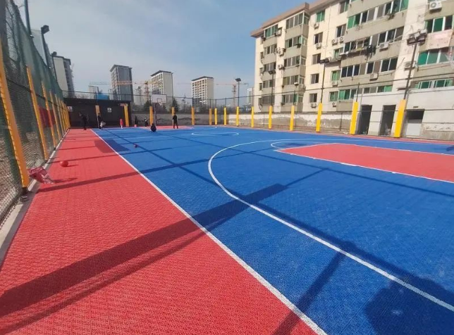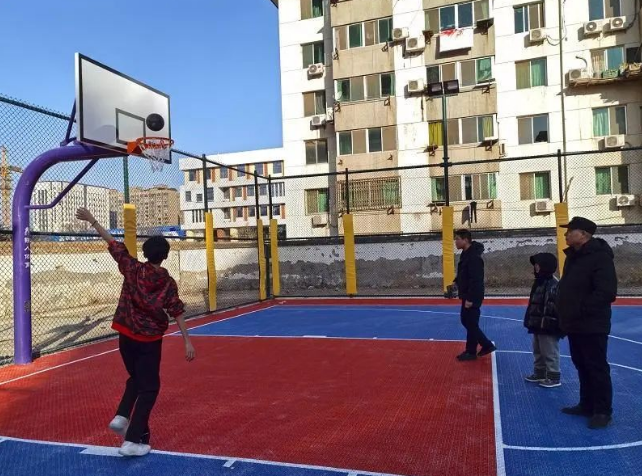 2025年1月初,改造工程火热开启。施工现场机器轰鸣,工人们干劲十足,平整土地、修缮硬化地面、铺设五彩地胶、竖起坚固围栏、架起崭新篮架,每一项工作都进行得井井有条。到了1月中旬,一座占地600多平方米的现代化户外笼式篮球场完美亮相。社区还贴心地装上露天灯,以方便居民晚上也能来打球,尽情挥洒汗水。