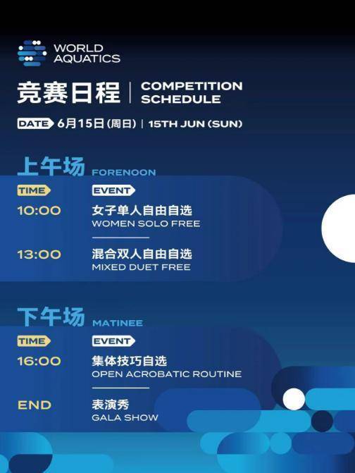 2025年世界泳联花样游泳世界杯总决赛赛程日历