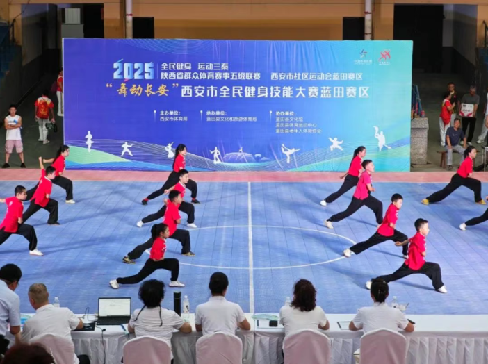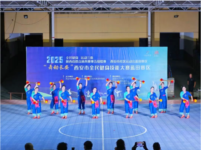 8月6日,“全民健身 运动三秦”西安市社区运动会蓝田赛区暨“舞动长安”2025西安市全民健身技能大赛蓝田赛区在蓝田县体育中心举行。本次活动由西安市体育局主办,蓝田县文化和旅游体育局承办,来自全县21支代表队300多人参加了比赛。