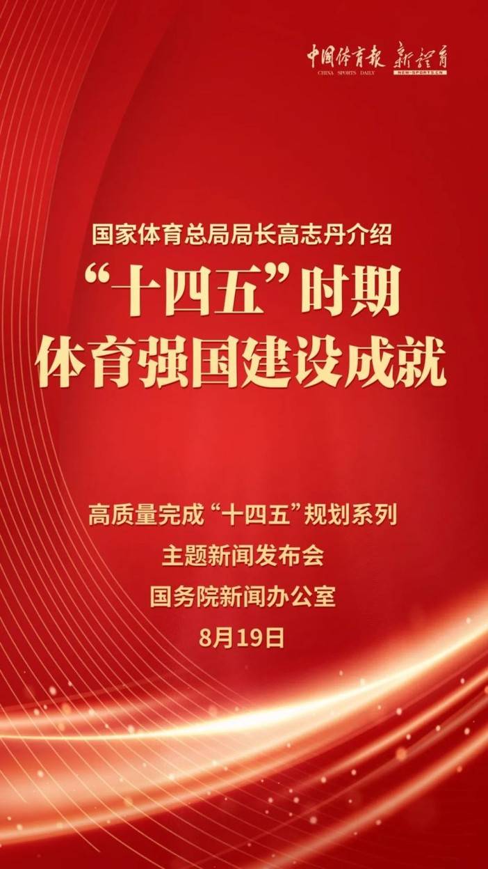 国务院新闻办公室于8月19日(星期二)上午10时举行“高质量完成‘十四五’规划”系列主题新闻发布会。国家体育总局局长高志丹在发布会上介绍“十四五”时期体育强国建设成就,一起来速览要点吧!